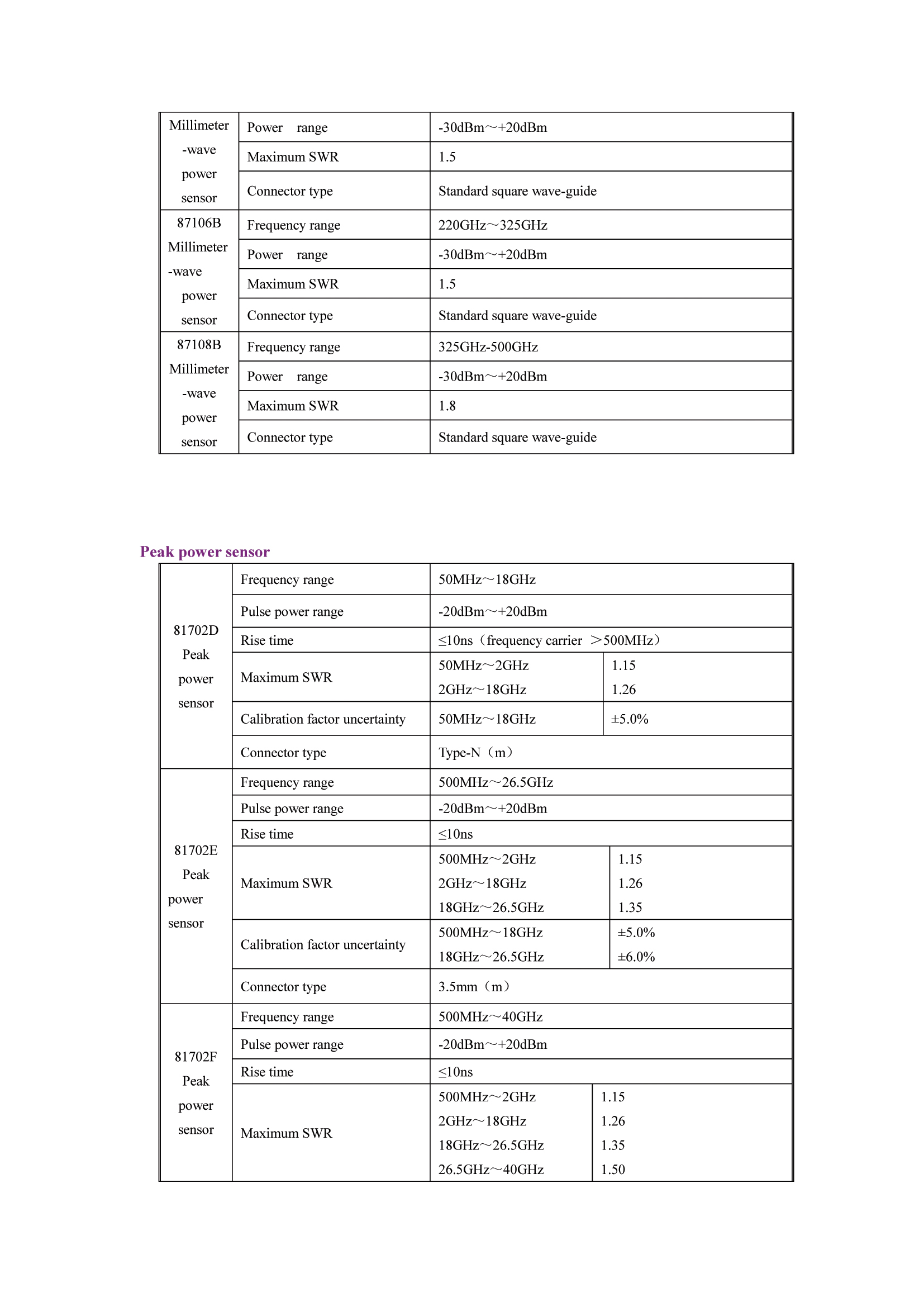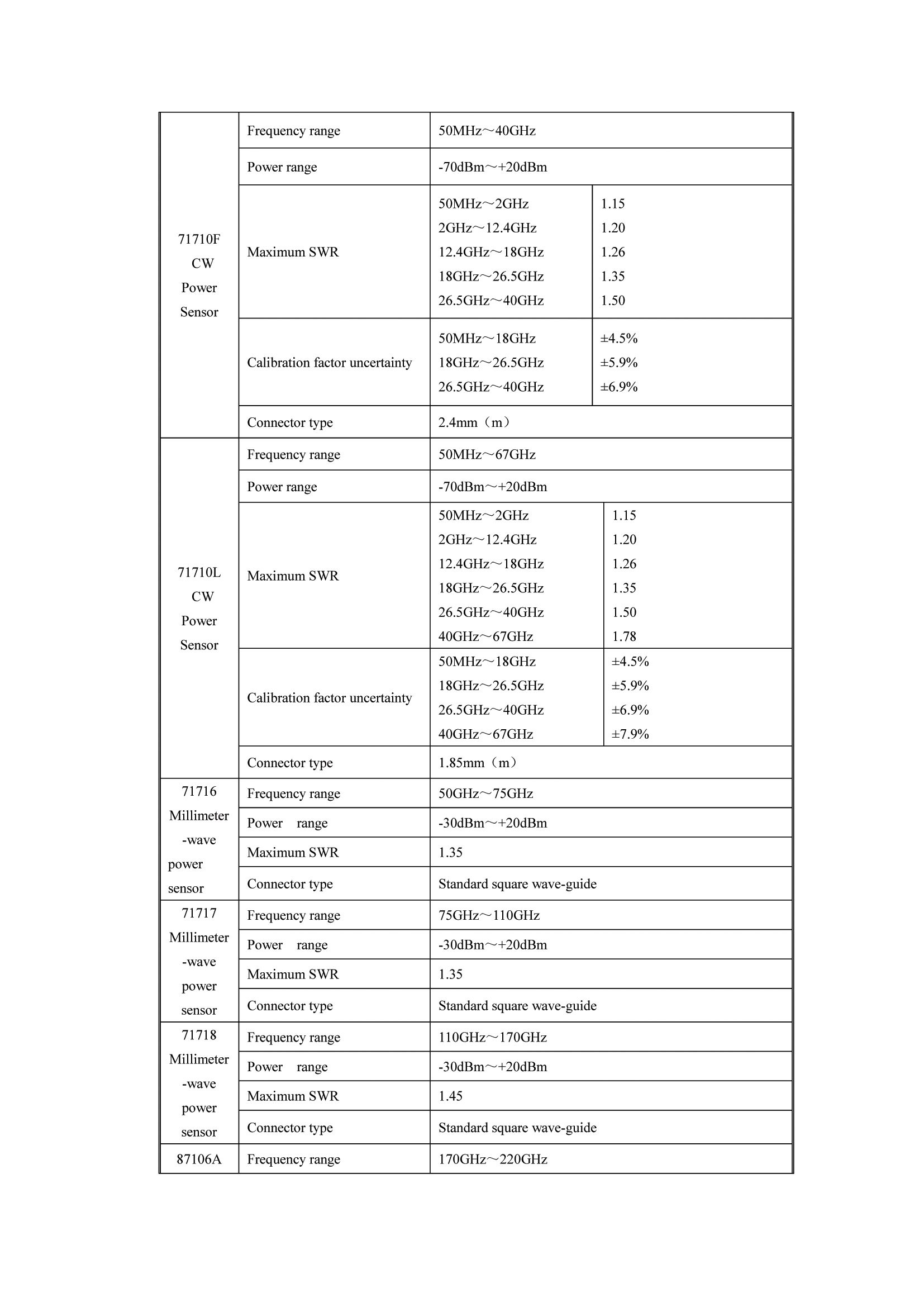 • Abundant power sensors: CW power sensor frequency up to 500GHz with the max. dynamic range 90dB, Peak power sensor frequency up to 67GHz with the max. dynamic range 60dB