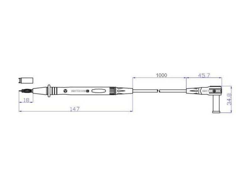 • Łączna długość przewodu pomiarowego: 1192,7 mm (1000 mm – przewód, 147 mm – końcówka pomiarowa, 45,7 mm – złącze)
