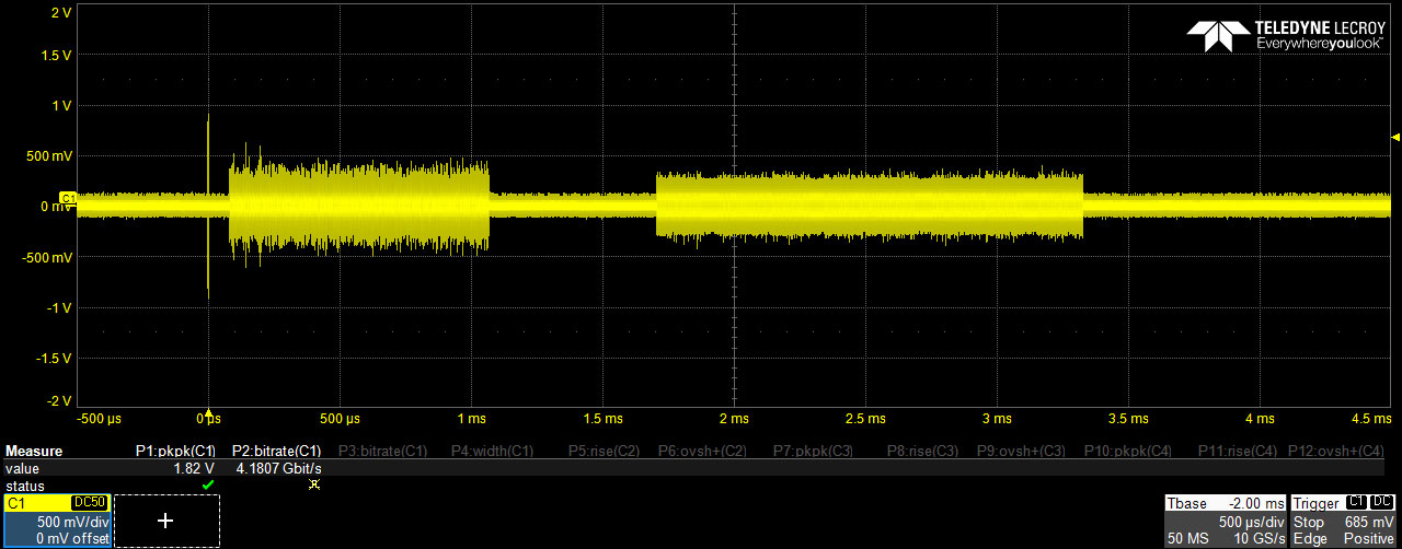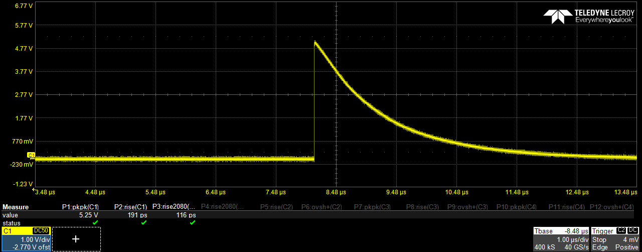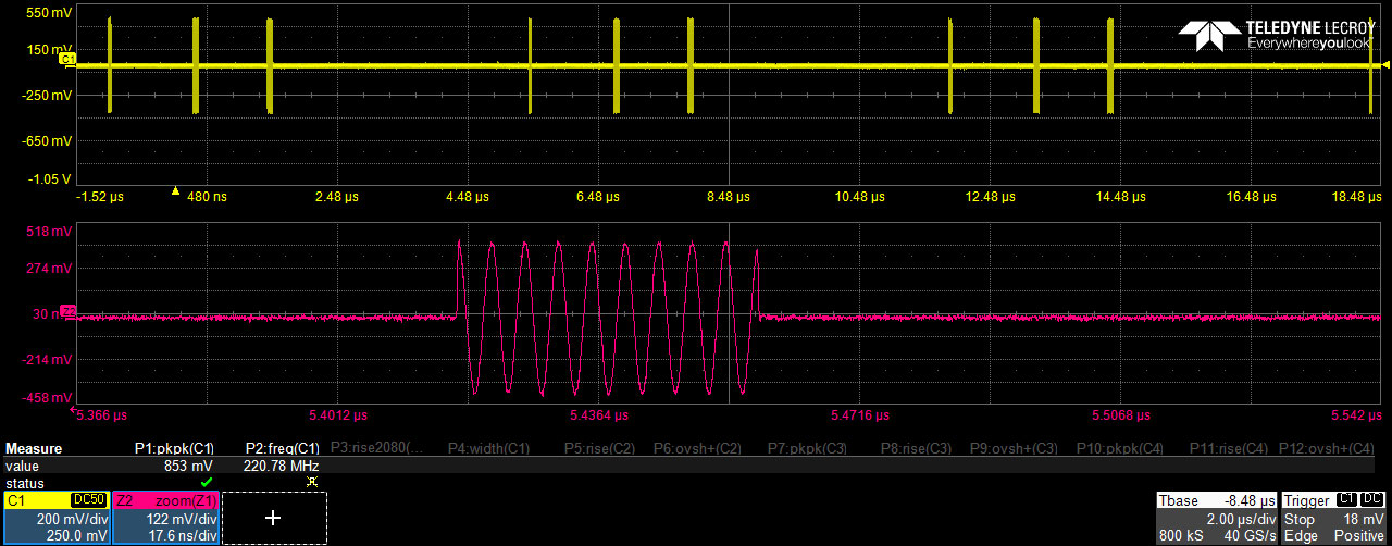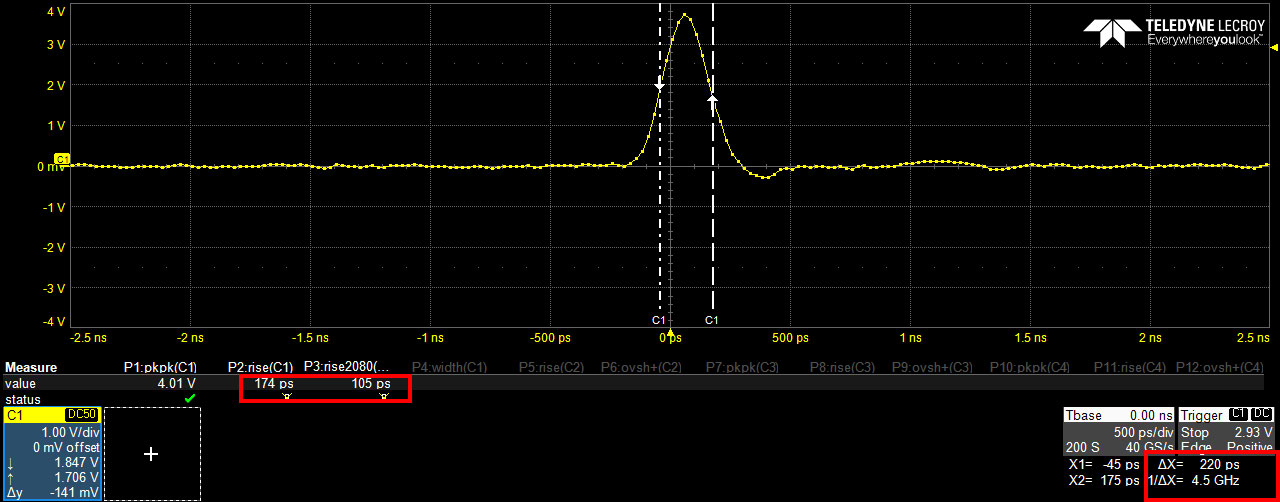 - Do 5Vpp przy 50 Ohm amplitudzie impulsu z ± 2,5V offsetem sprzętowym