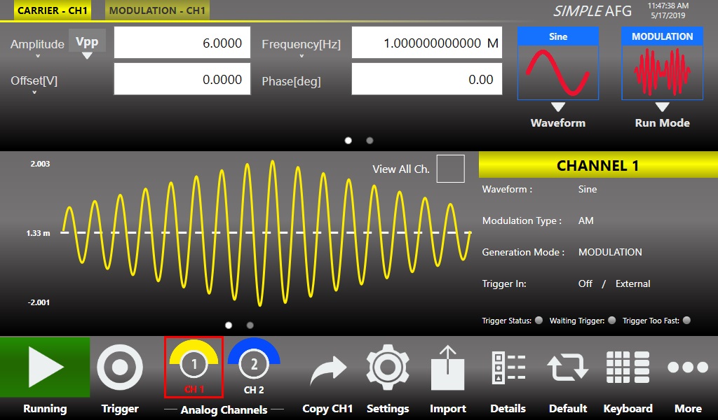 SimpleRider UI został zaprojektowany jako szybki interfejs do narzucenia prostoty w pracy z generatorem sygnału, poprzez optymalizację dzisiejszej nowoczesnej techniki, używanej w tabletach lub smartfonach, pojemnościowego ekranu dotykowego.