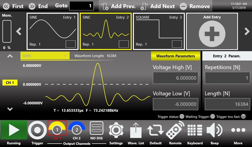 - Tworzenie przebiegów testowych za pomocą oprogramowania Waveform Editor lub ich import za pomocą aplikacji innych firm, takich jak MatLab, Labview, języki .NET itp.