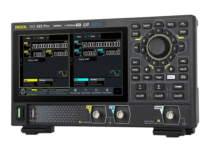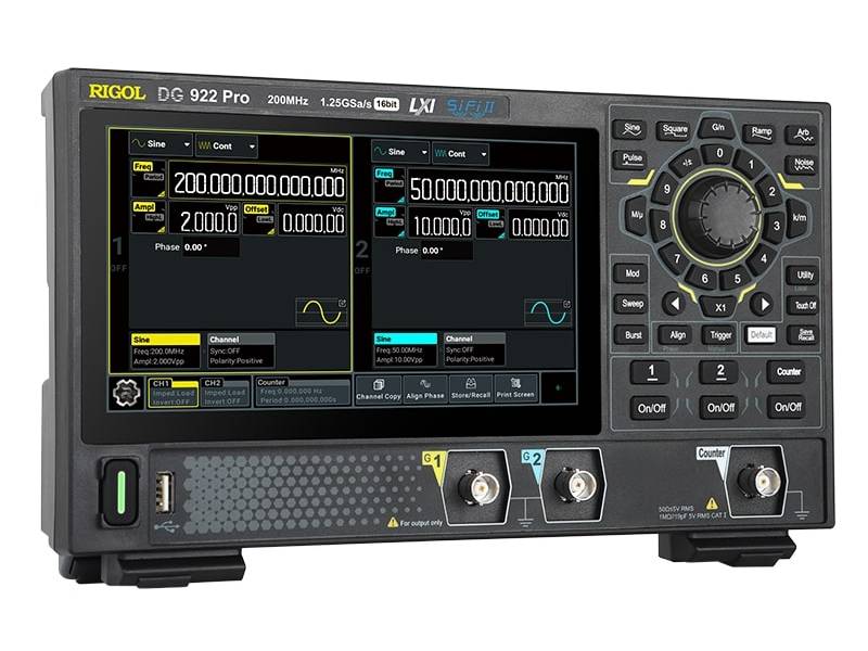 Generator funkcji/arbitralnych przebiegów serii DG900 Pro zapewnia częstotliwość próbkowania do 1,25 GSa/s i głębokość pamięci 16 Mpts/CH (standard). Jest to ekonomiczny dwukanałowy generator funkcji / przebiegów arbitralnych, który łączy w sobie wiele funkcji, w tym generator funkcji, generator przebiegów arbitralnych, generator szumów, generator impulsów, generator harmonicznych, modulator analogowo-cyfrowy i licznik.