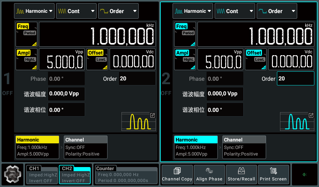 Wbudowany generator harmonicznych wysokiego rzędu (maks. 20. rzędu)