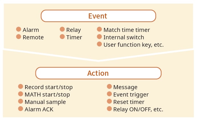 Możliwość przypisywania akcji powiązanych z określonymi zdarzeniami podczas pracy stacji akwizycji danych.