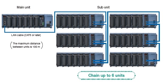 Gdy rejestrator jest zainstalowany poza obiektem (z dala od DUT), można umieścić rozszerzalne wejścia/wyjścia w miejscu instalacji i monitorować dane bez konieczności prowadzenia okablowania termopar i innych czujników na duże odległości.