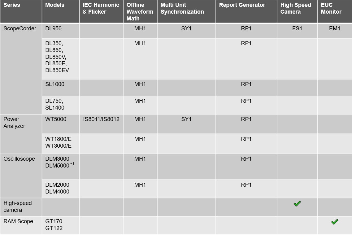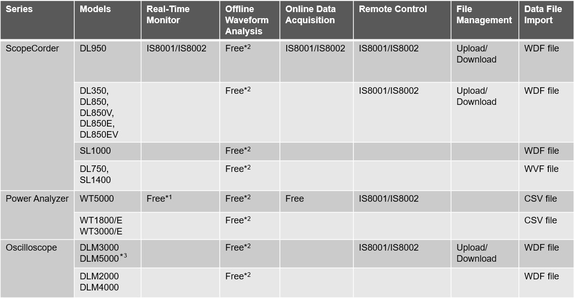 | Data File Import | DL350, DL850 series, DL950, DL750 (Only WVF file), SL1400 (Only WVF file) , SL1000, WT1800 series, WT3000 series, WT5000, DLM2000 series, DLM3000 series, DLM4000 series, DLM5000 series, DLM5000HD series |