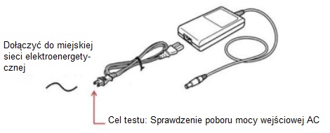 Test poboru mocy AC przez zewnętrzny zasilacz AC/DC prowadzony w układzie pomiarowym zawierającym miernik mocy IT9121E włączony szeregowo między sieć energetyczną a testowany zasilacz.
