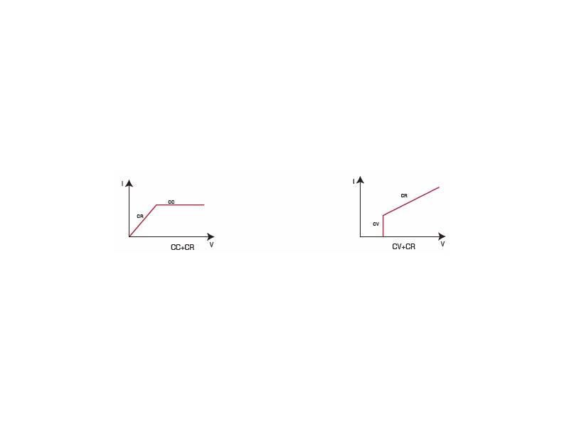 | Trybu CC+CR można użyć, testując własności funkcji zabezpieczającej przed przekroczeniem wartości granicznej napięcia, wartości granicznej prądu, a także testując dokładność napięcia stałego i dokładność prądu stałego. |