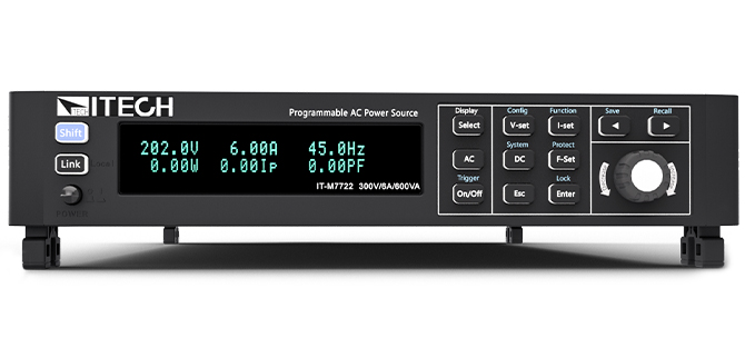 Zasilacze serii IT-M7700 mają wbudowany miernik mocy AC, którym można mierzyć z dużą precyzją i wyświetlać na ekranie aż 12 parametrów, w tym napięcie skuteczne, prąd skuteczny, częstotliwość, moc czynną i współczynnik mocy. Dzięki temu można zmniejszyć koszty testu i nie tracić czasu na tworzenie skomplikowanych połączeń.