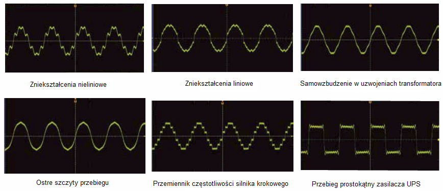 • Wbudowana bogata baza danych przebiegów różnego typu, włącznie z 30 przebiegami odkształconymi-harmonicznymi