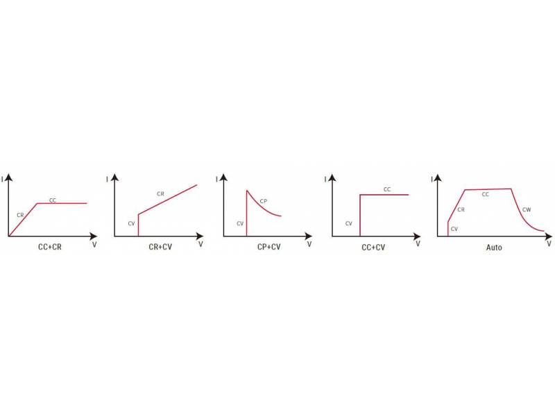 Tryb CR+CV jest używany do symulacji oświetlenia LED, testowania zasilania LED i pomiaru tętnienia prądu. Tryb CP+CV może zastąpić ustawienie punktu VON lub być używany do testowania rozładowania baterii, a punkt ustawienia napięcia może być używany jako napięcie odcięcia. Tryb CC+CV może być używany do symulacji akumulatorów, testowania stosów ładowania lub ładowarek oraz ograniczania maksymalnego prądu obciążenia podczas pracy CV. Tryb AUTO umożliwia automatyczne przełączanie między trybami CV, CR, CC i CP. Gdy obwód zabezpieczający DUT jest uszkodzony, tryb może zostać automatycznie przełączony, aby uniknąć uszkodzenia DUT.