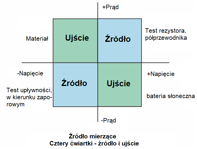 • Zintegrowane własności źródła i pomiaru w czterech ćwiartkach charakterystyki prądowo-napięciowej oraz obsługa pomiaru dwu i czteroprzewodowego
