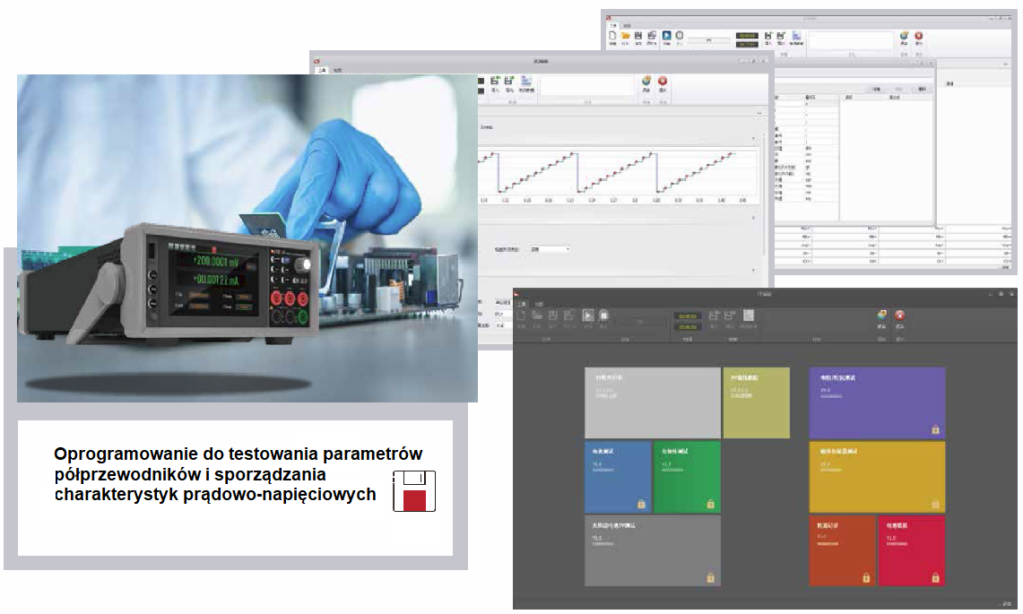 Oprogramowanie do testowania parametrów półprzewodników zapewnia szybkie i potężne narzędzie do testowania parametrów zarówno statycznych, jak i dynamicznych tych podzespołów. Program ustawia wstępnie różne typy elementów półprzewodnikowych i użytkownik może szybko skonfigurować źródło mierzące za pomocą przeciągania. Interfejs graficzny użytkownika jest prosty i łatwy w obsłudze, co przyśpiesza testowanie i proces badawczy.