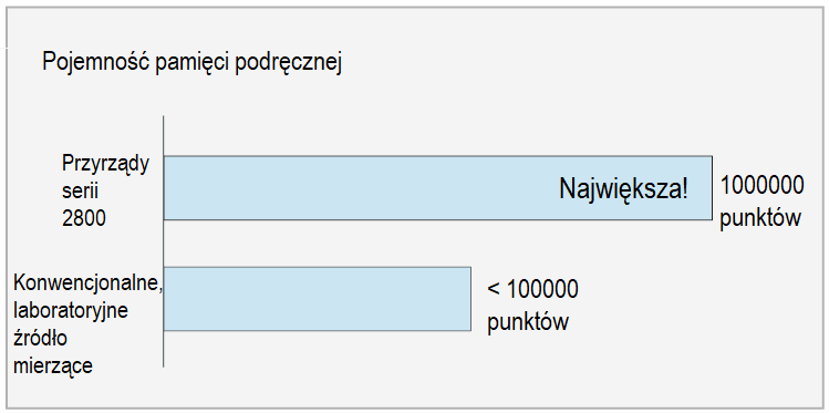 Duża pamięć podręczna, w którą wyposażono źródło mierzące IT2805, jest przeznaczona do aplikacji pomiarowych wymagających znacznego stopnia automatyzacji i dużej szybkości wyprowadzania danych. Funkcja pomiaru może zmagazynować w pamięci przyrządu do miliona wyprowadzanych punktów, a funkcja pomiaru źródła – do miliona punktów danych. Użytkownik może czytać dane zapisywane w plikach źródłowych pamięci podręcznej, w tym samym czasie, w którym trwa pomiar. W ten sposób spełnia się wymóg szybkiej akwizycji danych pomiarowych i skraca się czas potrzebny na przesłanie danych w trybie jednej instrukcji.