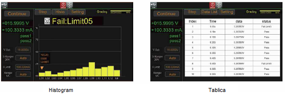 IT2805 dysponuje również trybami przeglądania wyników testu zarówno graficznych, jak i liczbowych. Intuicyjne tryby przeglądania wykresu, oscyloskopowego oraz zarejestrowanych danych poprawiają w ogromnym stopniu wydajność testów laboratoryjnych i analizowania charakterystyk prądowo-napięciowych.