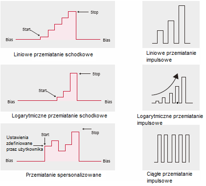 • Funkcje przemiatania: liniowego, logarytmicznego, impulsowo-liniowego, impulsowo-logarytmicznego i listy