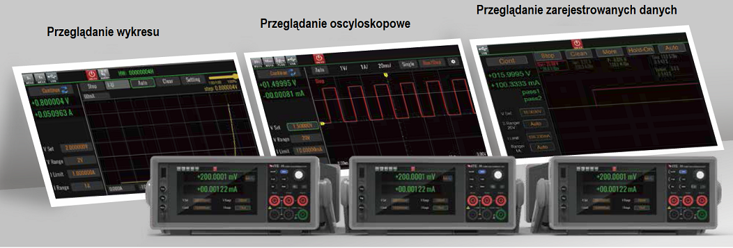 Przeglądanie zarejestrowanych danych: Tryb ten umożliwia użytkownikowi przeglądanie historii przebiegów oraz tablic z danymi za określony czas. Minimalny odstęp czasowy próbkowania wynosi 100 μs, stąd umożliwia zarejestrowanie maksymalnie 1 miliona punktów danych. Odznacza się też funkcjami eksportu danych pomiarowych do arkusza kalkulacyjnego (w formacie .csv) w celu ich późniejszej analizy, znacznie poprawiając tym wydajność testowania i debugowania.