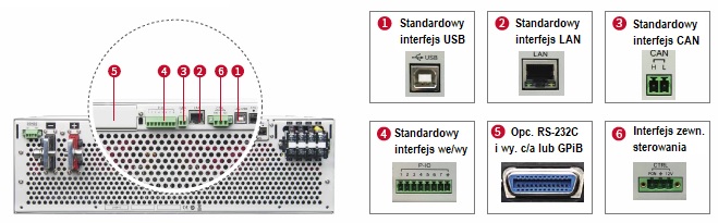 | Interfejsy | Montowane standardowo: USB, CAN, LAN, VCP; opcjonalnie: GPiB, RS-232 | |