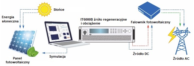 Użytkownicy SAS1000, opcjonalnego oprogramowania na IT6000B do symulacji solarnej sieci energetycznej mogą z łatwością mierzyć, wyświetlać wyprowadzać moc maksymalną, w tym też status monitorowania falownika fotowoltaicznego w czasie rzeczywistym, a ponadto rejestrować otrzymywane dane. Korzystając z wbudowanych procedur pomiarowych, mogą w prosty sposób symulować krzywe I-U, testować parametry statyczne i dynamiczne (MPPT) falowników i sporządzać raporty zgodnie z normami EN50530, Sandia, NB/T32004, CGC/GF004, CGC/GF035. Zasilacz do symulacji solarnej zapewnia też tryb „cienia i tablicy”, w którym użytkownik może wprowadzić tablicę z maksymalnie 4096 punktami do edycji dowolnej krzywej I-U i osiągnąć dynamiczny efekt zacieniania panelu fotowoltaicznego. Użytkownik może też zapisać w pamięci przyrządu 100 krzywych I-U otrzymanych w różnych warunkach naświetlenia i temperatury, ustawić czas pracy i zadecydować o przeprowadzeniu długookresowego testu MPPT falownika fotowoltaicznego w różnych warunkach klimatycznych.