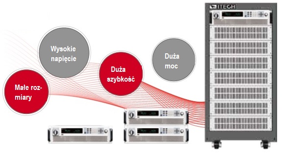 Gdy zaistnieje potrzeba skorzystania z większej mocy niż oferowana przez jeden zasilacz serii IT6000D, to można połączyć równolegle kilka takich zasilaczy, lecz tego samego modelu. Taki system zasilający zbudujemy szybciej i w sposób bardziej elastyczny.
