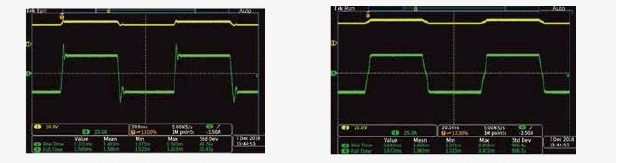 napięcie to jest wyprowadzane szybciej, przełączanie; skuteczne tłumienie nagłych wzrostów prądu