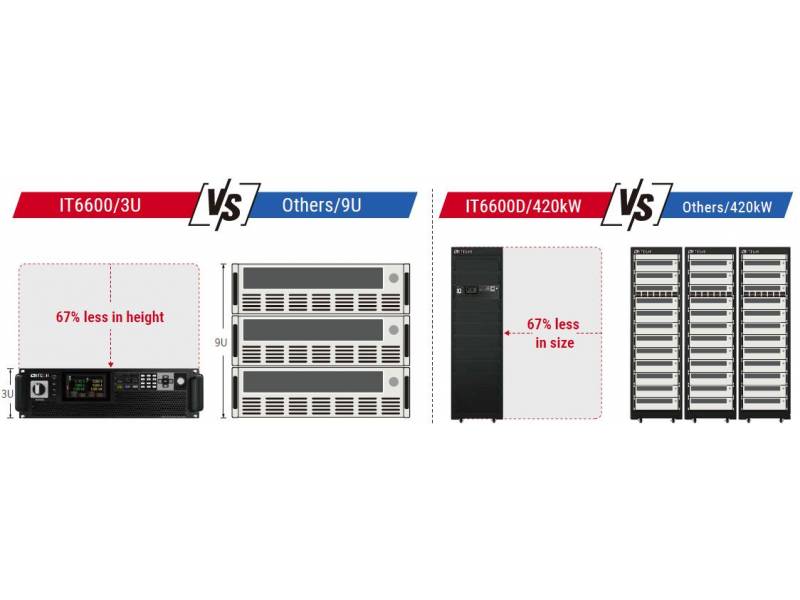 Seria IT6600C zapewnia do 42 kW mocy zasilania i mocy ładowania w obudowie 3U, dzięki czemu jest to doskonałe rozwiązanie do testów o wysokiej wydajności i mocy. Jest również znakomitym rozwiązaniem dla zintegrowanych systemów o surowych wymaganiach przestrzennych.