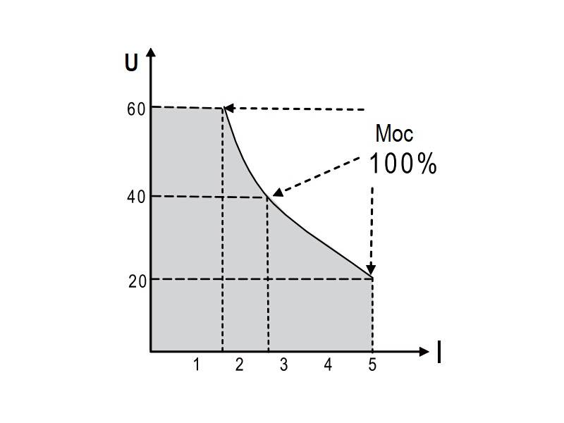 • Napięcie wyjściowe stałe regulowane od 0 do 60 V, a prąd do 25 A, moc nie przekracza 600 W