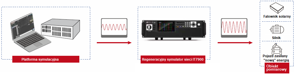 Regeneracyjny symulator sieci elektroenergetycznej serii IT7900EP może być używany jako wzmacniacz mocy do realizacji aplikacji sprzętu zasilającego w pętli „PHIL” przeznaczonych do mikro-sieci elektroenergetycznych, magazynowania energii oraz pojazdów „nowej energii”. Przez zewnętrzny interfejs analogowy (opcja) można doprowadzać sygnał cyfrowy lub standardowy zestaw sygnałów analogowych, które można następnie wzmacniać bez wprowadzania zniekształceń do sygnału o rzeczywistym kształcie fali zasilającej z czasem odpowiedzi mniejszym od 100 µs.
