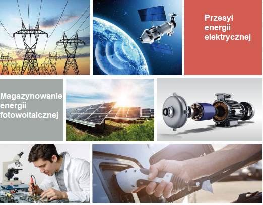 | Przesyłanie energii elektrycznej: Falownik połączony z siecią, elektroniczny system stabilizacji zasilania Pojazdy zasilane „nową energią”: Ładowarka pokładowa (OBC), stacja ładowania AC, sprzęt zasilający pojazdu elektrycznego, ładowarka BOBC (v2x – wzajemna komunikacja między pojazdami) Magazynowanie energii: Przetworniki magazynowania energii PCS, domowe urządzenia magazynowania energii fotowoltaicznej (PV) Placówki naukowo-badawcze: Zasilacz zewnętrzny AC-DC, test kompatybilności elektromagnetycznej (EMC) Elektroniczne urządzenia zasilające: Transformator, wentylator AC, UPS, silnik AC |