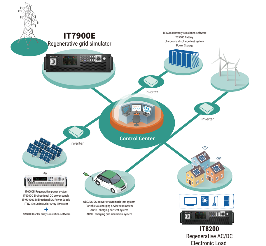 Jako mikro-sieci traktuje się nie tylko małe systemy zasilające, lecz również typowe systemy generacji rozproszonej, gdyż producenci sprzętu i profesjonalne laboratoria naukowo-badawcze sieci potrzebują ustanawiać wymagania na testy symulacyjne. Przyrządy serii IT7900 nie tylko spełniają wymagania testowe odnośnie skoku kąta fazowego, „ride-through” niskiego napięcia, zmieniania częstotliwości i wprowadzania harmonicznych, lecz również przekazują energię z powrotem do sieci, spełniając tym wymagania stawiane testom mikro-sieci.