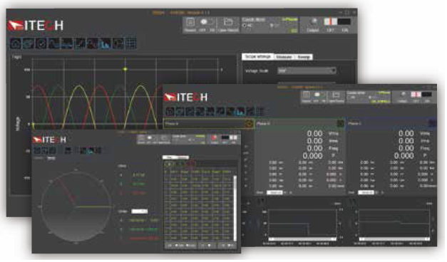 Obciążenia serii IT2800 mają wbudowane funkcje oscyloskopu cyfrowego, dzięki którym może zbierać w domenie czasu sygnały napięcia i prądu, zależności fazowych, wyzwalać przebiegi itd. Okres próbkowania wynosi 10 µs. Można też wyświetlić maksymalnie sześć krzywych oscyloskopowych, na koniec testu przeprowadzić ich analizę.