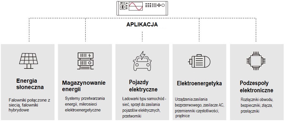 • Duża gęstość mocy równa 15 kW w obudowie rozmiarów 3U, zaawansowana technika SiC
