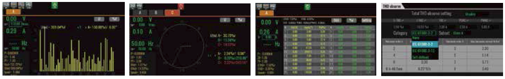 • Kompleksowy pomiar i analiza harmonicznych, do 50.; wbudowany test na zgodność z normą pomiarową IEC61000-3-2/3-12 *3