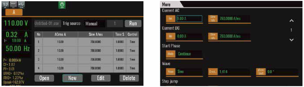 • Tryby: NORMAL, LIST (lista – programowanie przebiegu), SWEEP (przemiatanie), Surge&Sag (udary i zapady)