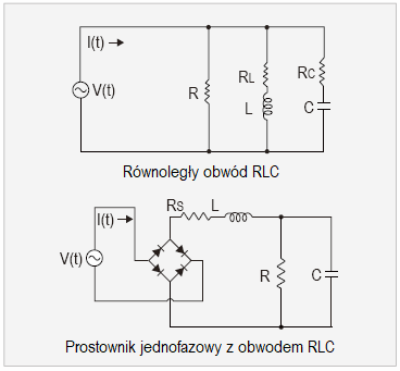 | Emulacja układu (CE) – prostownik jednofazowy z obwodem RLC | ||||