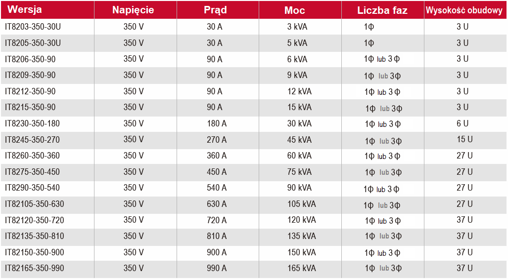 Dane techniczne obciążenia regeneracyjnego AC/DC ITECH IT8205-350-30U