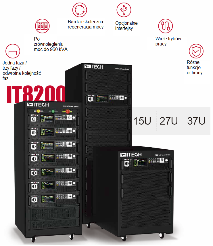 Regeneracyjne obciążenia serii IT8200 są dostępne w obudowach regałowych poczynając na samodzielnych o rozmiarze 3U a na rozmiarach 15U, 27U i 37U kończąc, a także w innych, różnych, kompaktowych konfiguracjach. Stąd mogą spełniać różnorodne wymagania użytkowników w przedziale mocy od 5 kVA do 165 kVA, przy napięciu wyjściowym do 350 V. Rozmiar 3U/15 kVA odpowiada tylko 1/12 rozmiaru zasilacza AC konwencjonalnego typu. Użytkownik obciążania serii IT8200 o takich rozmiarach może zaoszczędzić dużo miejsca, a ponadto zmniejszyć znacznie koszty.