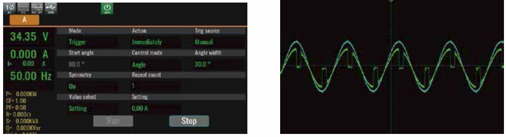 • Obsługa sterowania kątem fazowym przy obciążaniu i przy braku obciążania, możliwość ustawiania w pełnym zakresie od 0° do 359°