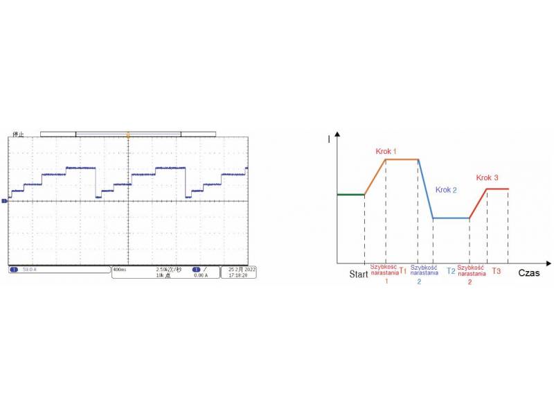 • Szybki (25 kHz) tryb dynamiczny, regulacja czasu narastania i opadania prądu