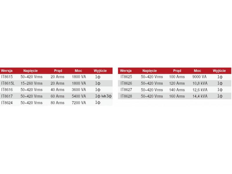 * Zewnętrzną funkcję analogową mają tylko obciążenia IT8615 i IT8615L.