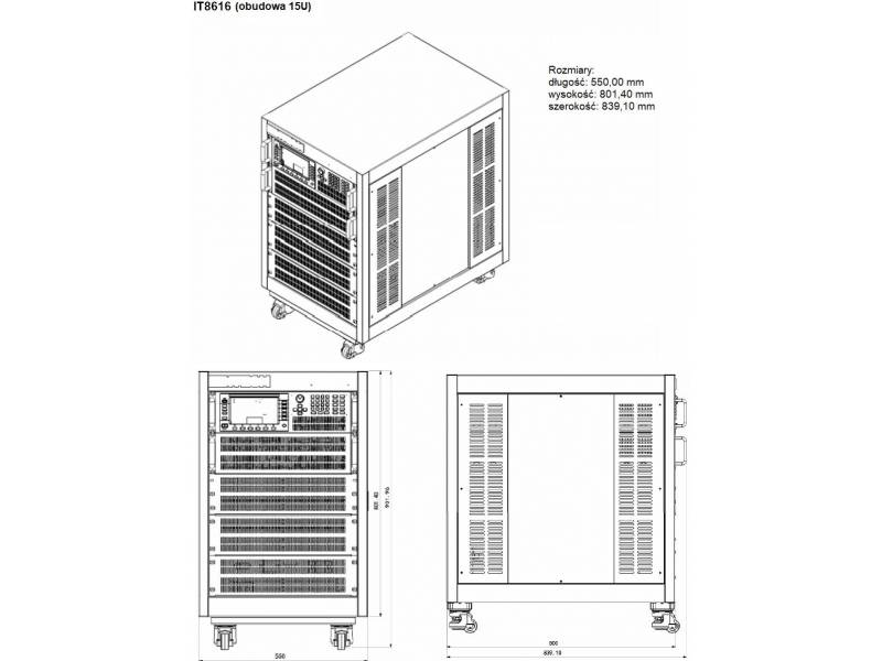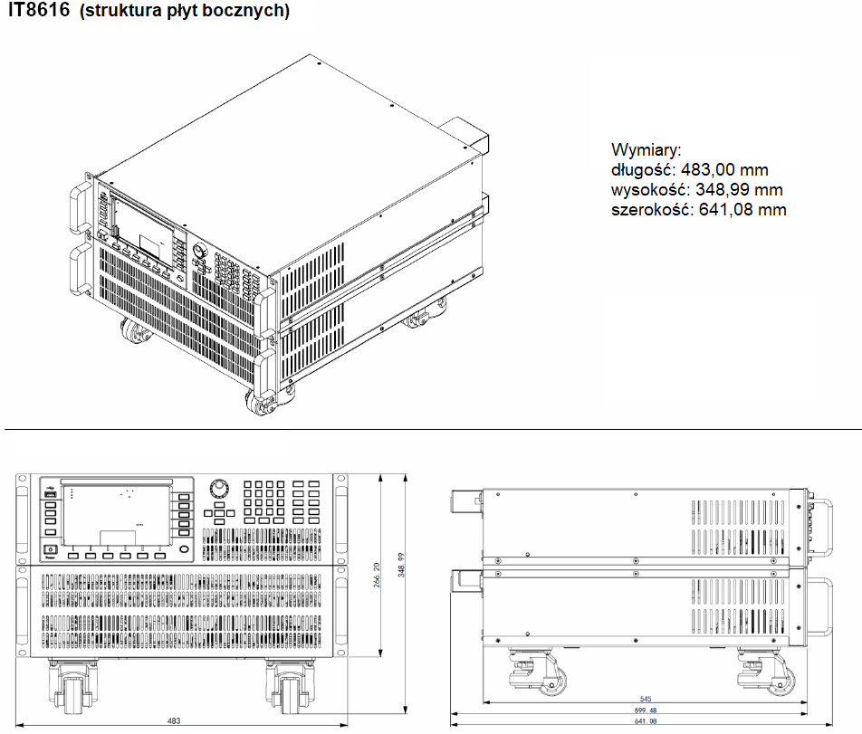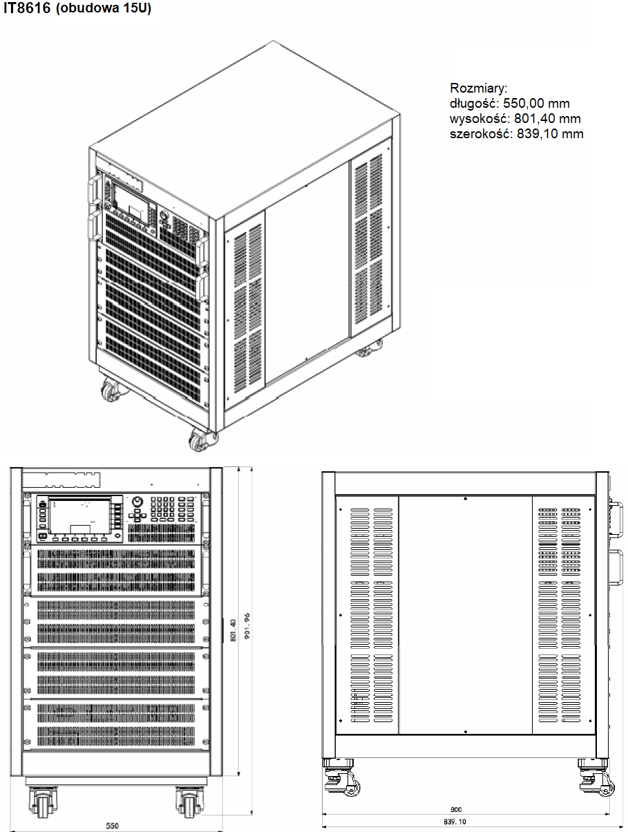 • Obciążenie IT8616 jest montowane w dwóch rozmiarach: w obudowie 15U i strukturze płyt bocznych