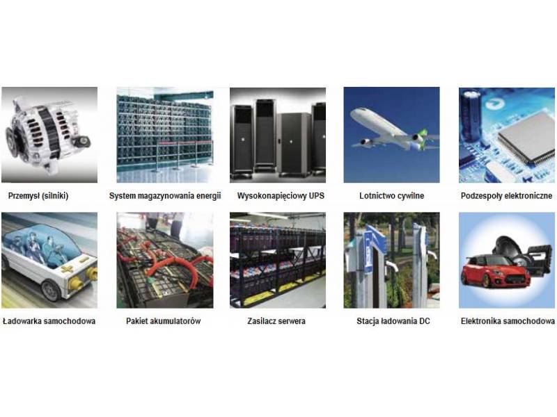 • Testy stacji ładowania DC, ładowarek samochodowych, urządzenia elektroniczne mocy i inne.