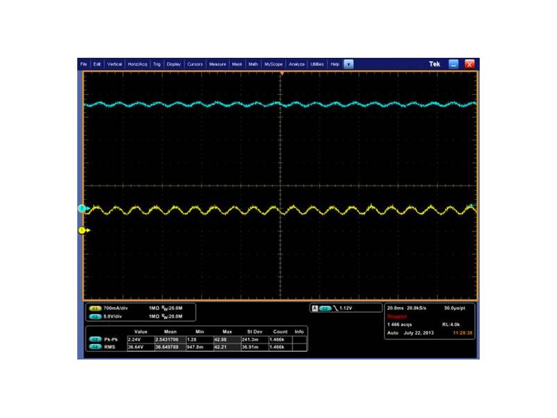 Obciążenie pracując w trybie CC+CV, znajdzie się w trybie CV (stałonapięciowym) w momencie rozpoczynania pracy oraz, gdy zostanie użyty układ scalony sterownika LED lub rezystor sprzęgający ograniczający prąd. Gdy prąd wyjściowy przekroczy wartość znamionową oraz osiągnięty odstęp czasowy stałego prądu, to obciążenie wyzwoli tryb CC (stałoprądowy) w celu bezpośredniego sterowania elementem LED. Trybu CC+CV można używać do różnych modeli konfiguracyjnych z elementami typu LED, wnosząc do konstrukcji systemu elastyczność, chroniąc też źródło sterownika LED.