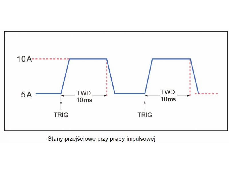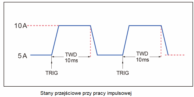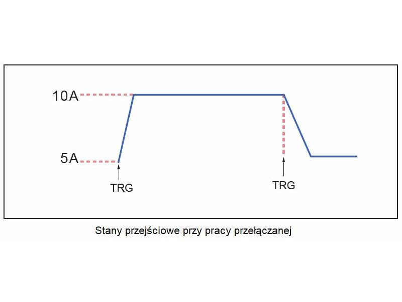Trybu dynamicznego można używać do testowania czasu odpowiedzi zasilania na stany przejściowe, odzwierciedlającego zdolność zasilania do zachowania stabilności przy stopniowych zmianach prądu obciążenia.