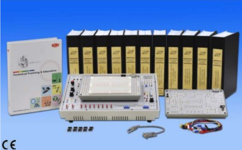 W skład zestawu wchodzi 10 wymiennych modułów ćwiczeniowych oraz jeden moduł programowalny CPLD i uniwersalna płyta montażowa.