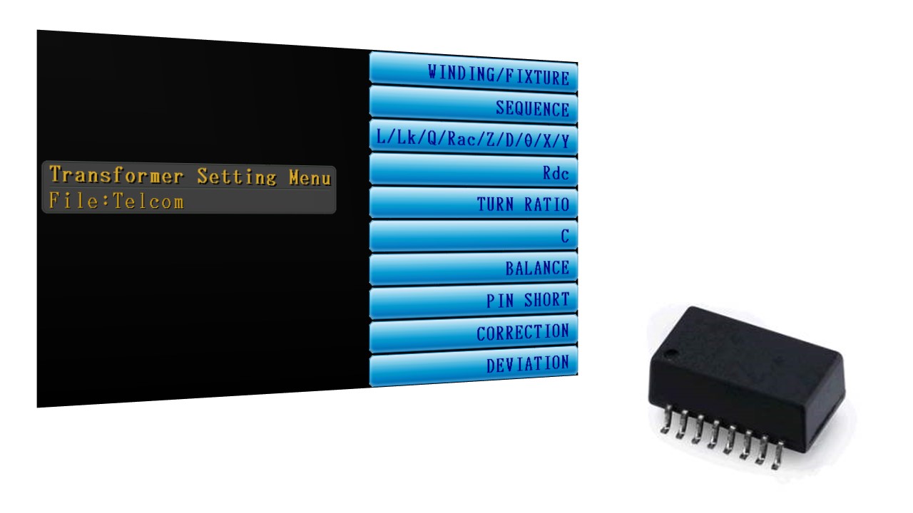 | Parameters Measurement | Inductance (L)、Impedance (Z)、Capacitance (C)、Resistance (R)、Conductance (G)、Susceptance (B)、Admittance (Y)、Alternating Current Resistance (ACR)、Quality Factor (Q)、θ、Direct Current Resistance (DCR)、Leakage Inductance、Turn Ratio、Balance、Short Circuit | ||