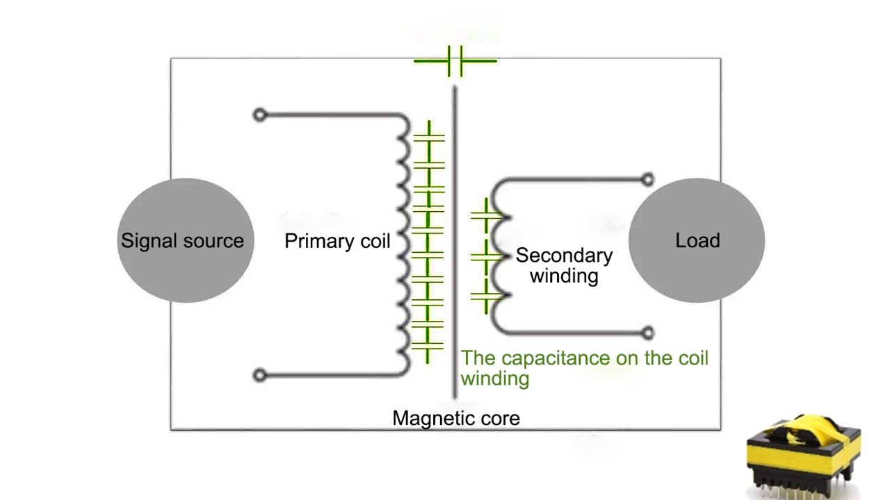 - Cewka uzwojenia transformatora zawiera rozproszoną pojemność, która zwykle jest rozprowadzana między cewkami uzwojenia.