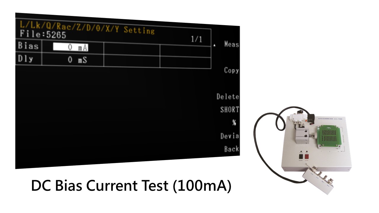 Istnieje element testowy, który koncentruje się na indukcyjności obwodu otwartego. Musi wejść 8mA DC Bias, częstotliwość 100kHz, poziom napięcia 0.1V fali sinusoidalnej i indukcyjność>350uH.