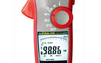 Mierniki cęgowe APPA serii 130F posiadają aktywny podświetlany wyświetlacz,
