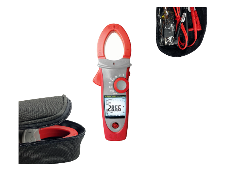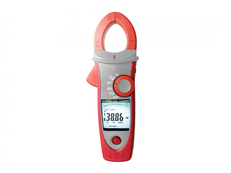 APPA136 to wielofunkcyjny 4-cyfrowy miernik cęgowy o zakresie pomiaru prądu do 600A i mocy do 600kW. Do produktu dołączony jest futerał, sonda temperaturowa, przewody pomiarowe, bateria i instrukcja obsługi